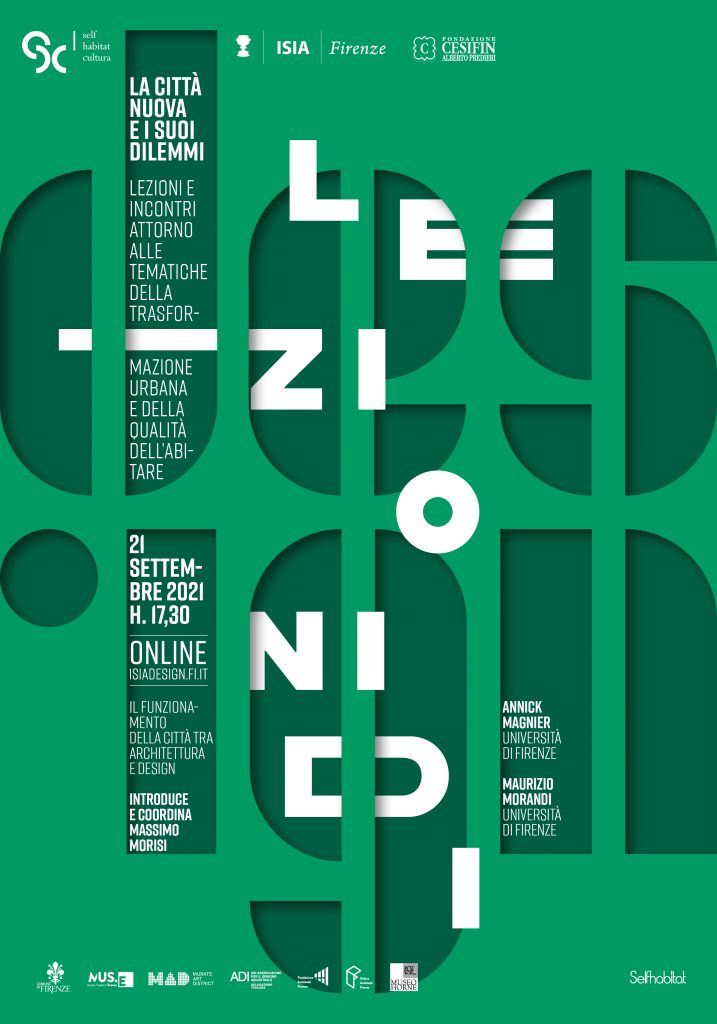 Martedì 21 settembre 2021, alle 17.30 sulla piattaforma Meet di ISIA, Annick Magnier e Maurizio Morandi, Università di Firenze, coordinati da Massimo Morisi discuteranno su “Il funzionamento della città tra architettura e design”.