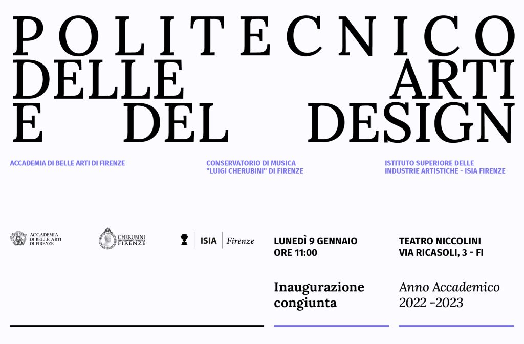 L’apertura dell’anno accademico, quest’anno per la prima volta, celebrata insieme dalle tre Istituzioni è un’evidente dichiarazione d’intenti nella direzione della costituzione del Politecnico delle Arti e del Design di Firenze, un polo di Alta Formazione Artistica, Musicale e Coreutica destinato a unire i tre diversi istituti fiorentini AFAM.