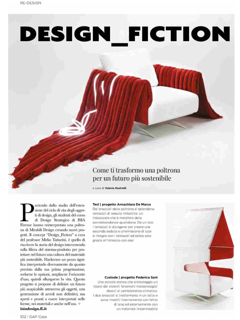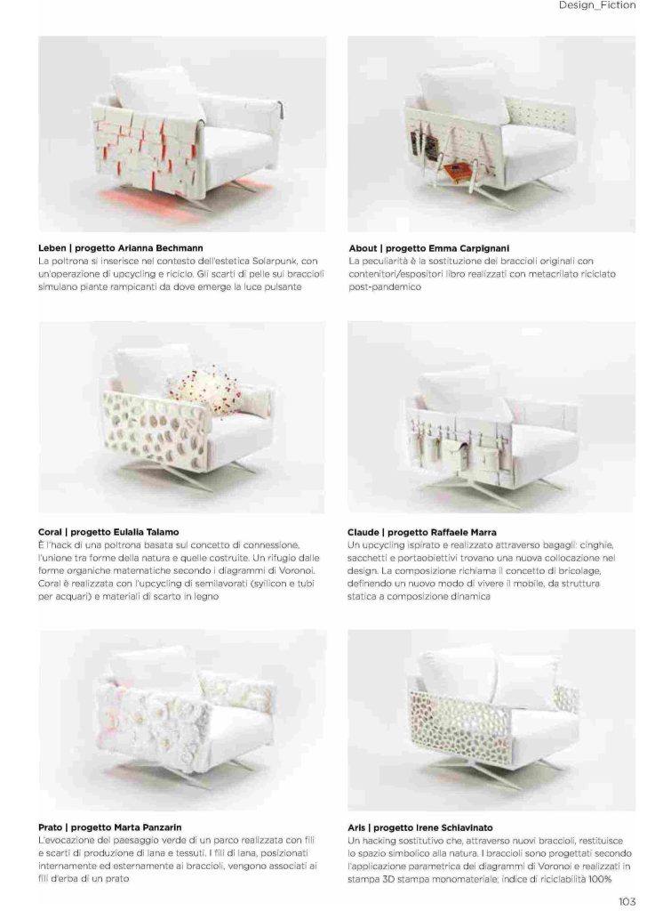 A pagg. 102-103, Design Fiction. Come ti trasformo una poltrona per un futuro più sostenibile, articolo di Valeria Rastrelli