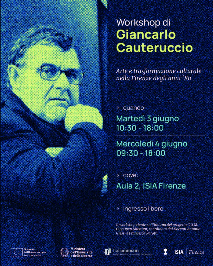 Il 3 e 4 giugno l’ISIA di Firenze ospiterà un workshop tenuto da Giancarlo Cauteruccio, regista e figura cardine del teatro sperimentale italiano. Un viaggio attraverso la Firenze ribelle e creativa degli anni Ottanta, dove l’arte diventa strumento di rivoluzione culturale.
